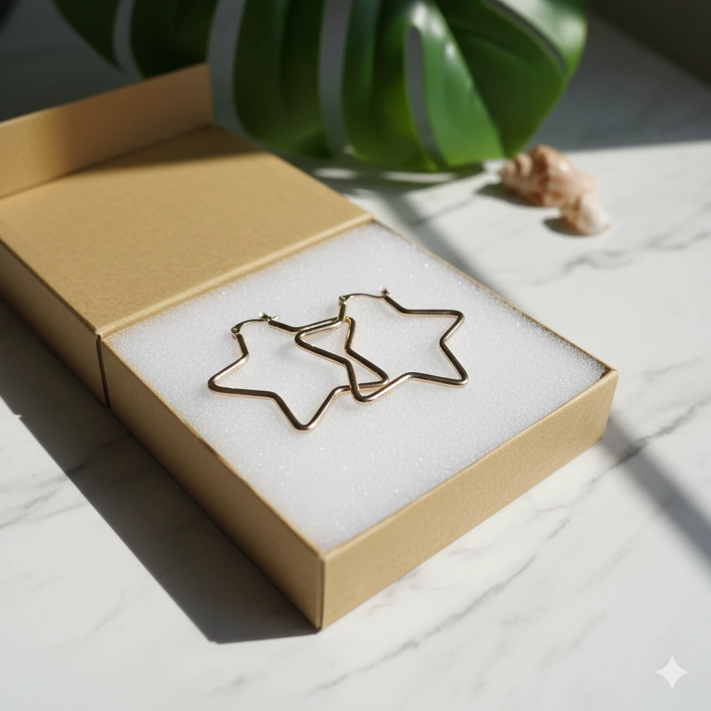 Shine bright with these Gold Star Hoop Earrings, designed to add a playful yet elegant touch to your look. Their star-shaped silhouette and polished gold-tone finish make them a standout accessory for both casual and evening wear.