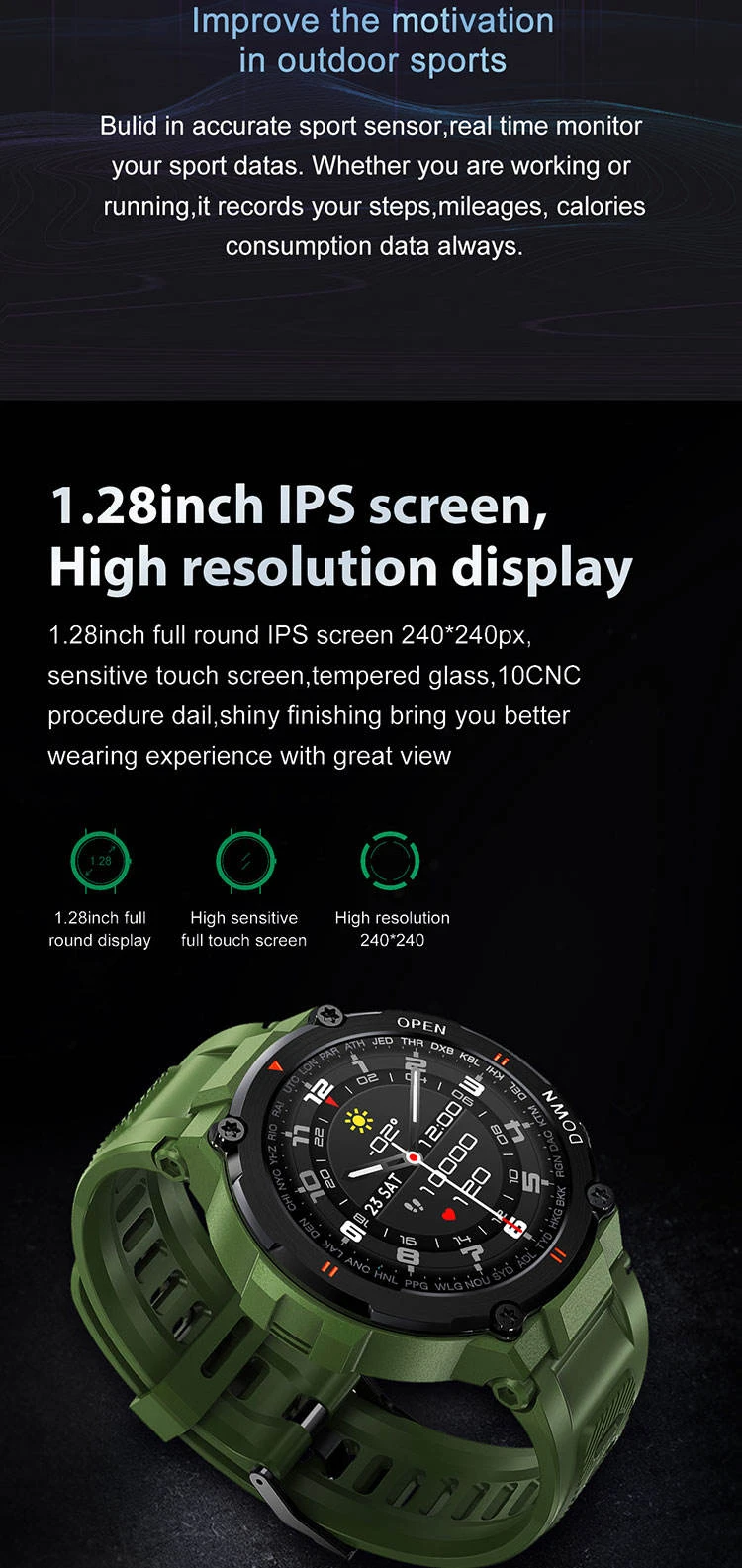 Quick View Screen: Lift wrist or tap to wake.