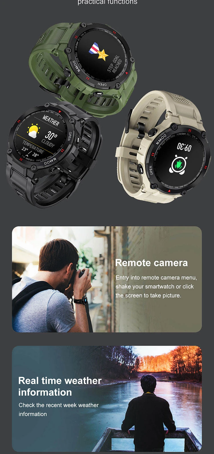 Shutter Mode: Remote camera control via wrist.