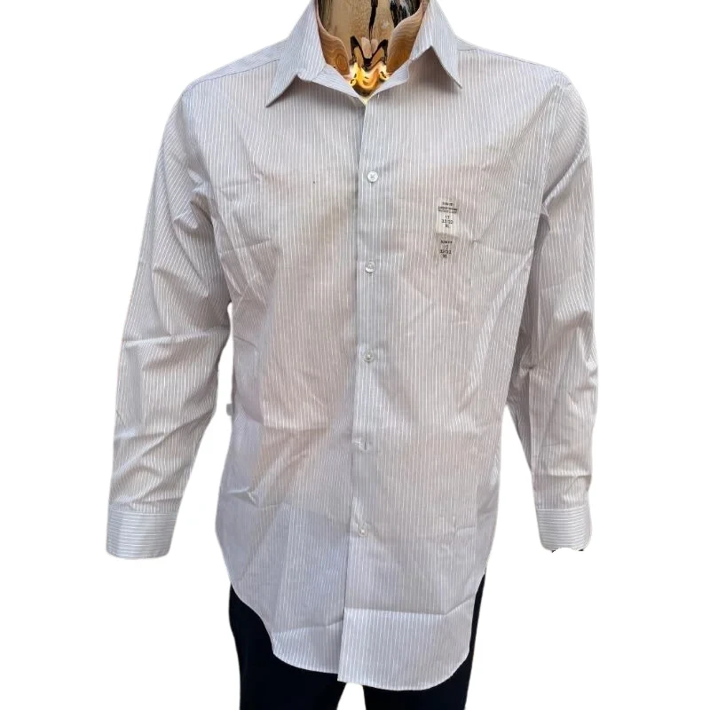 Refined style meets everyday comfort with this Calvin Klein men's dress shirt. Designed with a subtle grey pinstripe pattern on a crisp white backdrop, this shirt embodies the brand’s signature minimalist sophistication. The classic fit offers room to move without sacrificing a sharp silhouette, while the spread collar and long sleeves with button cuffs create a polished, versatile look—ideal for both professional settings and upscale casual wear.