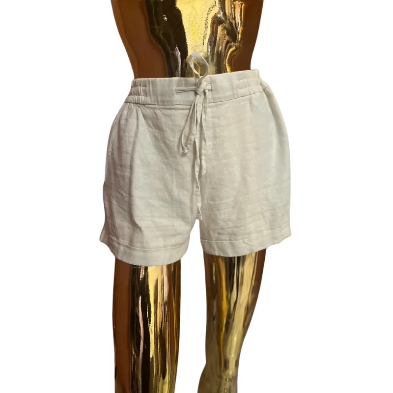 Embrace laid-back luxury with these chic light beige linen-blend shorts. The relaxed silhouette and adjustable drawstring waist offer ultimate comfort without compromising on style. A summer essential that pairs perfectly with everything from tank tops to blouses