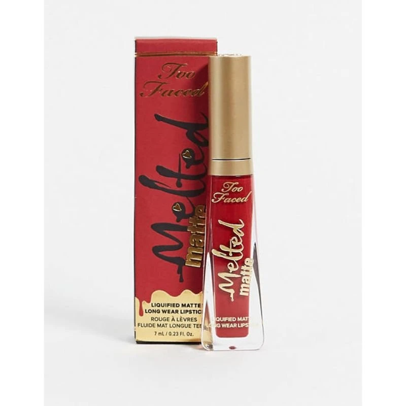 Make a bold, lasting statement with this Melted Matte Long-Wear Liquid Lipstick by Too Faced. This rich red shade delivers intense colour payoff and a true matte finish that glides on smoothly then sets into a confident, full-coverage lip look. The fluid formula allows for easy application while offering long-wear resilience—perfect for evening events, special occasions or any time you want lips that pop and stay put.