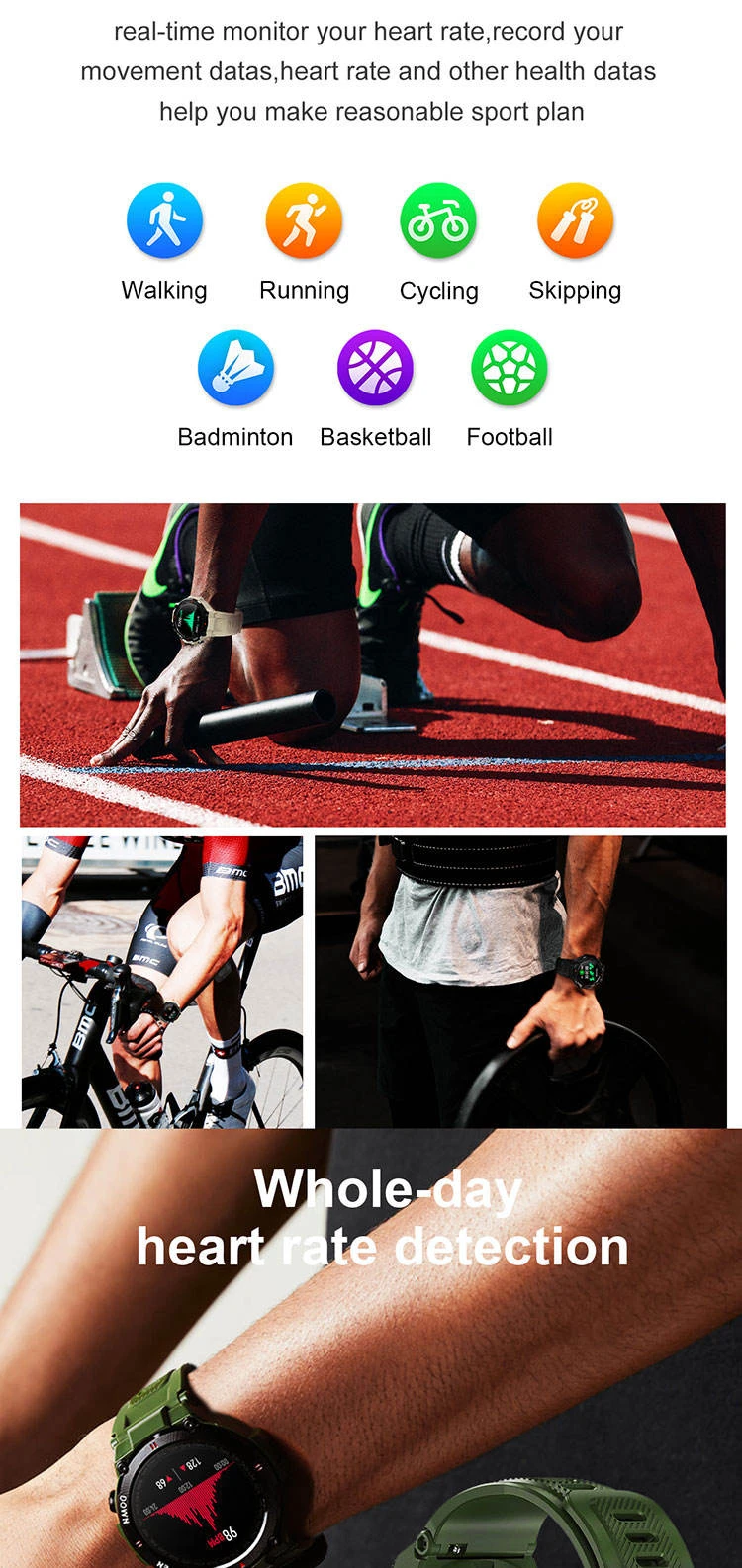 Multi-Sport Modes: Walking, Running, Cycling, Skipping, Badminton, Basketball, Football