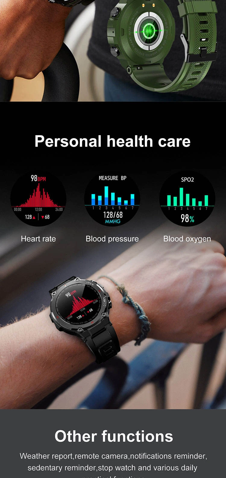 Set sedentary reminders, drink water reminders, alarm clocks, and notifications push through the app.